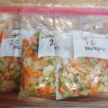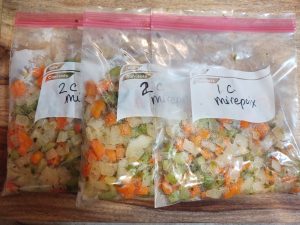 Of course, you can also make a much smaller batch of this if you don’t want to put any away in the freezer. One cup onion with one-half cup each celery and carrots would suffice for many recipes.
